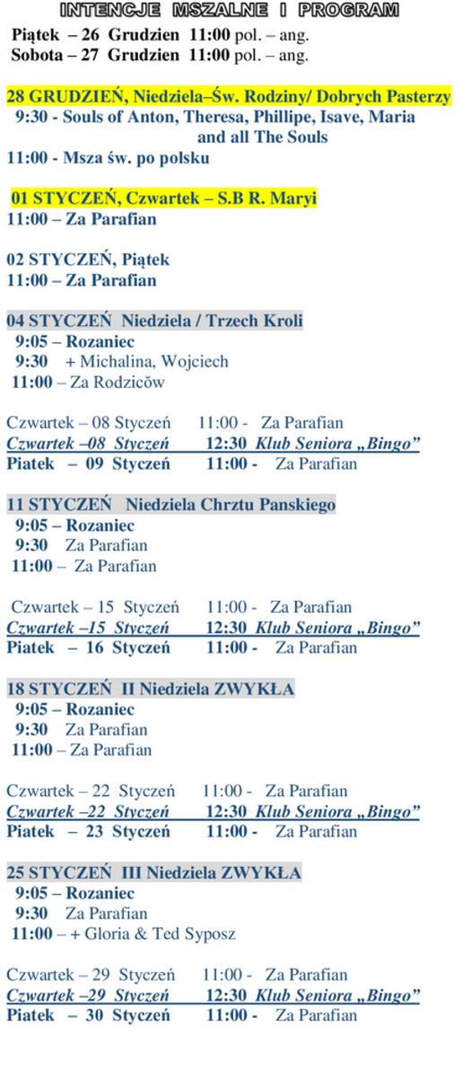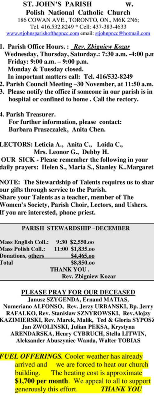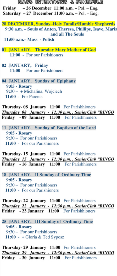 Mass Intention & Bulletin